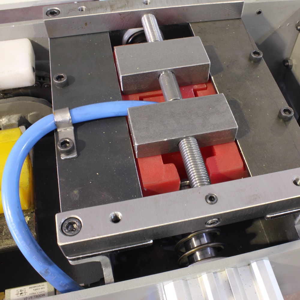 Malzeme ön dengeleyici çeneleri tarafından merkezlenir. Uzun ömürlü olması için çenelerin arasına yağ pompalanmaktadır.