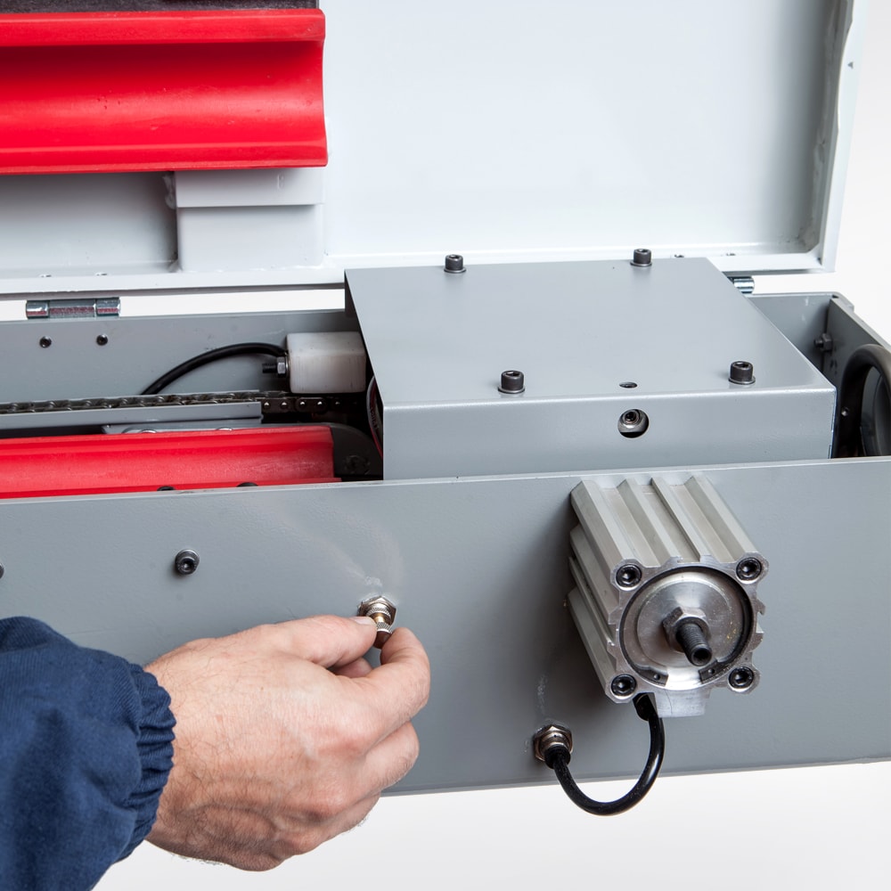 Ön tarafta basınçlı hava üflenerek malzemenin üzerindeki yağ süpürülür (Sadece malzeme ileri sürülürken)